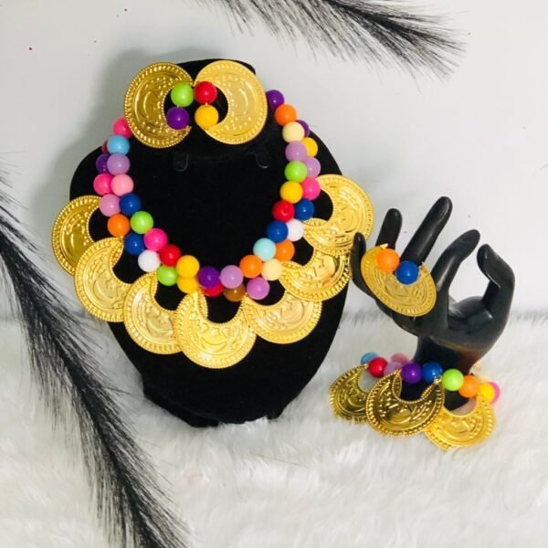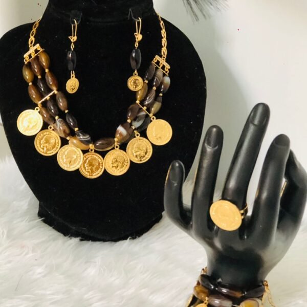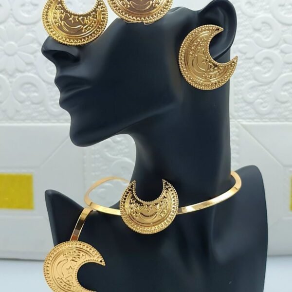 الطقم مكون من سلسل و حلق و خاتم و اسورة مطلي بماء الذهب
