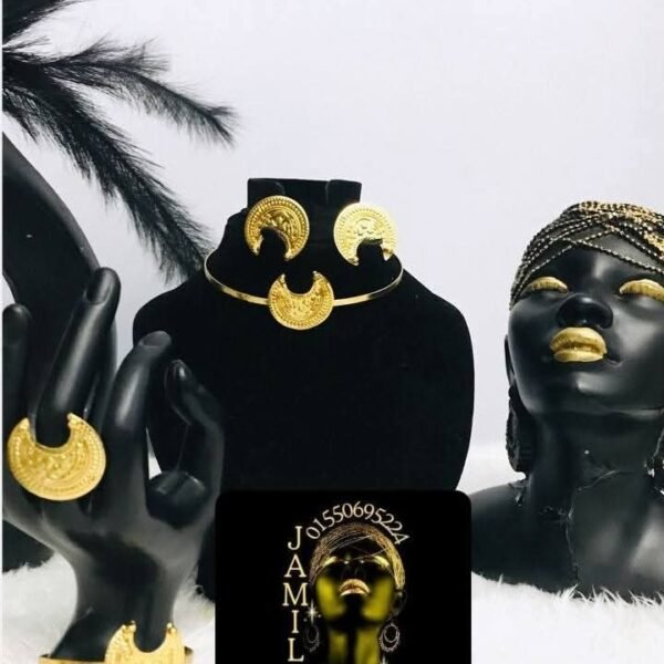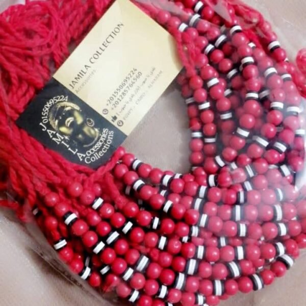 سيموته ذهبيه مع خرز احمر غامق والقصيص اكسسورات تحكي عن التراث السوداني الاصيل