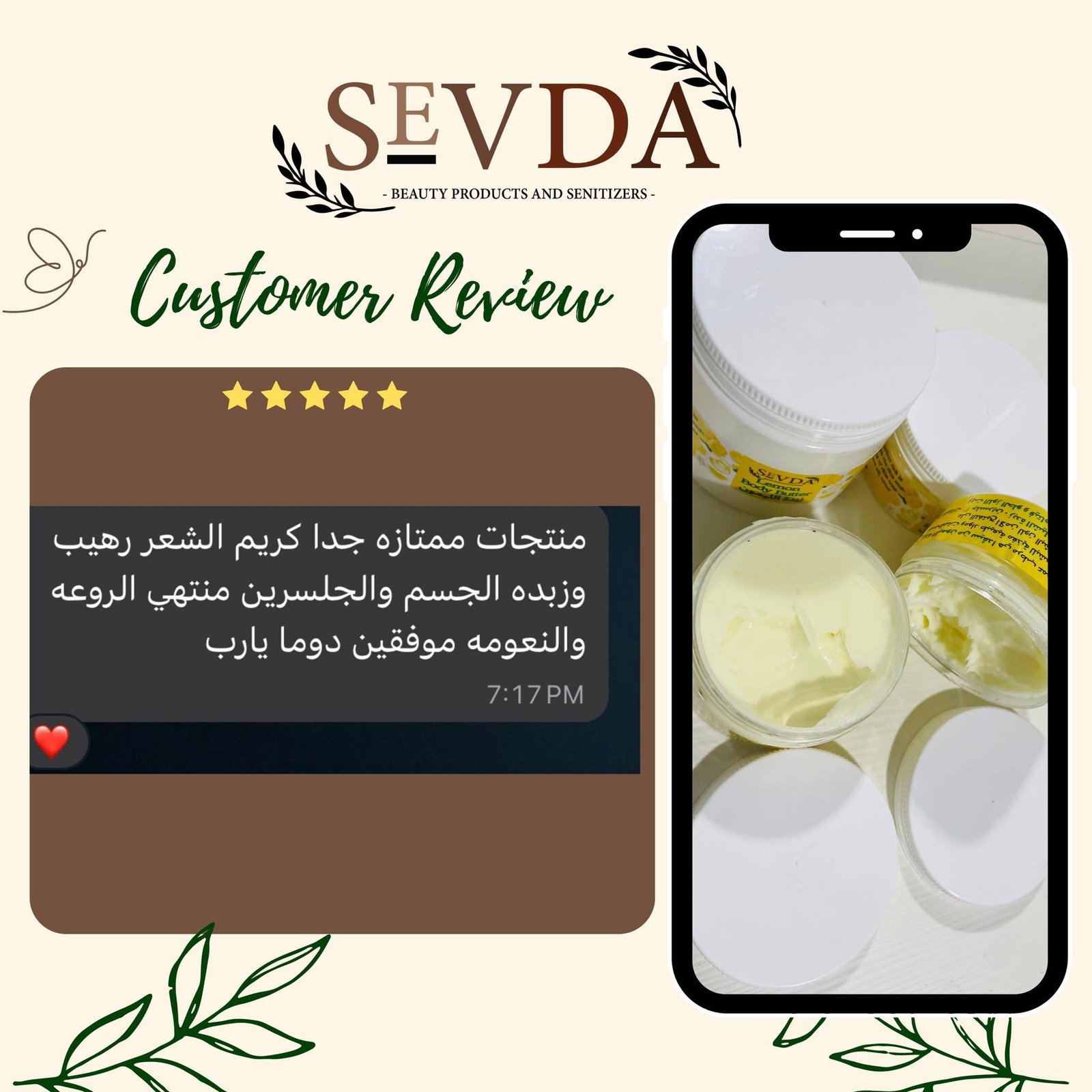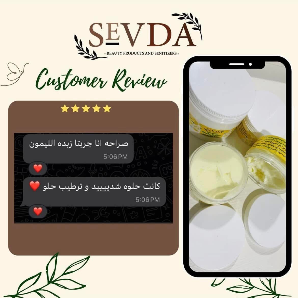 زبدة الليمون من سيڤدا زبدة قوامها كريمي تقيله مرطبه للبشرة وغنية بمستخلصات ومواد طبيعية مغذية للبشرة ومنها: