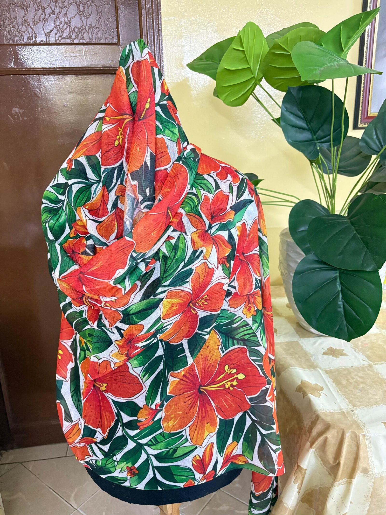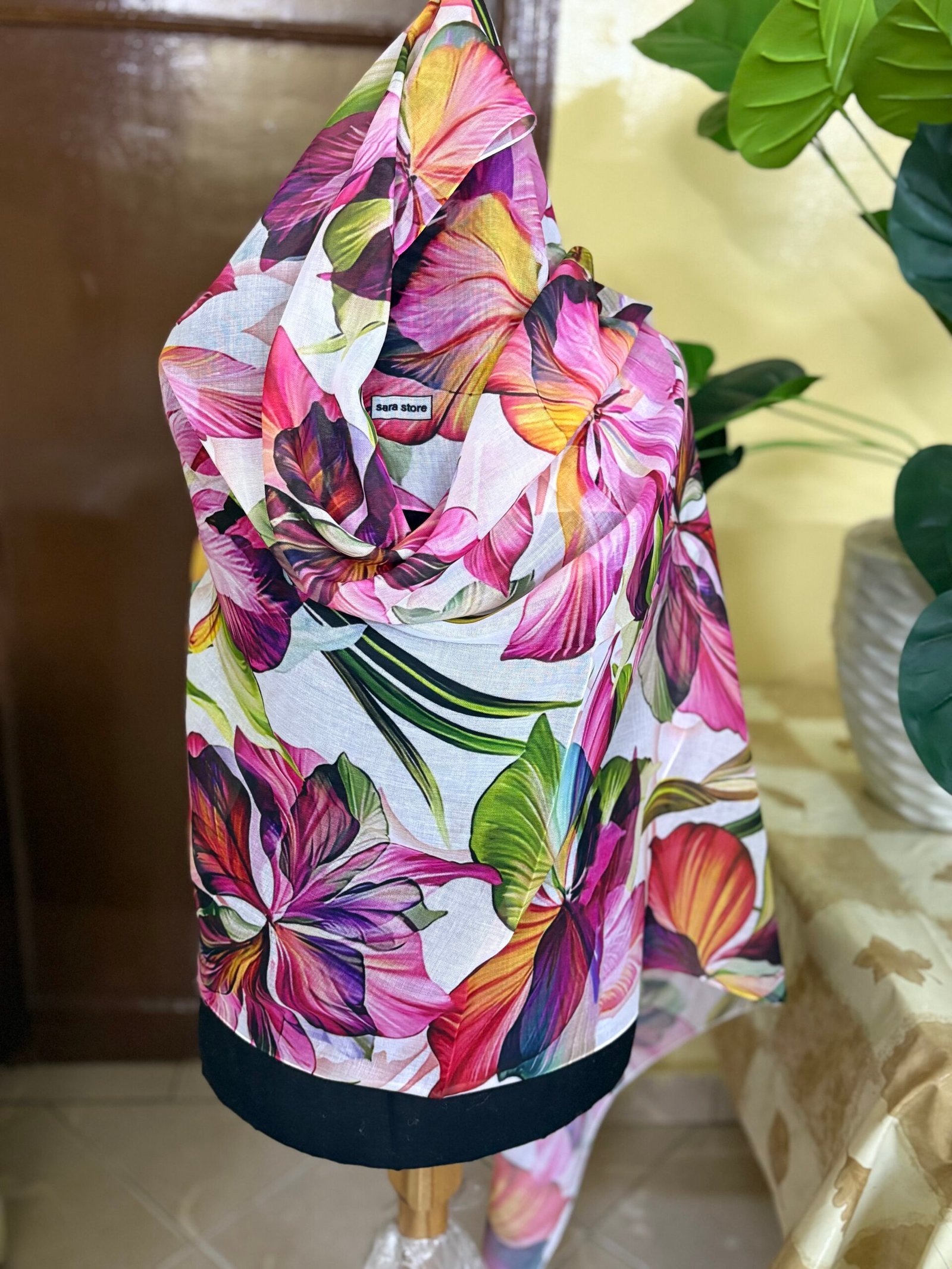 طرحة مشجره خامه كتان تركي مخلوط مقاس مترين في ٨٠ طرحه ثابته ولونها ثابت