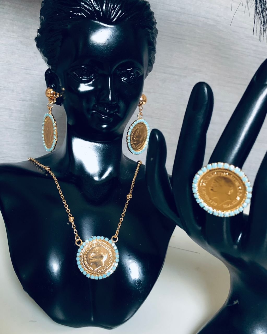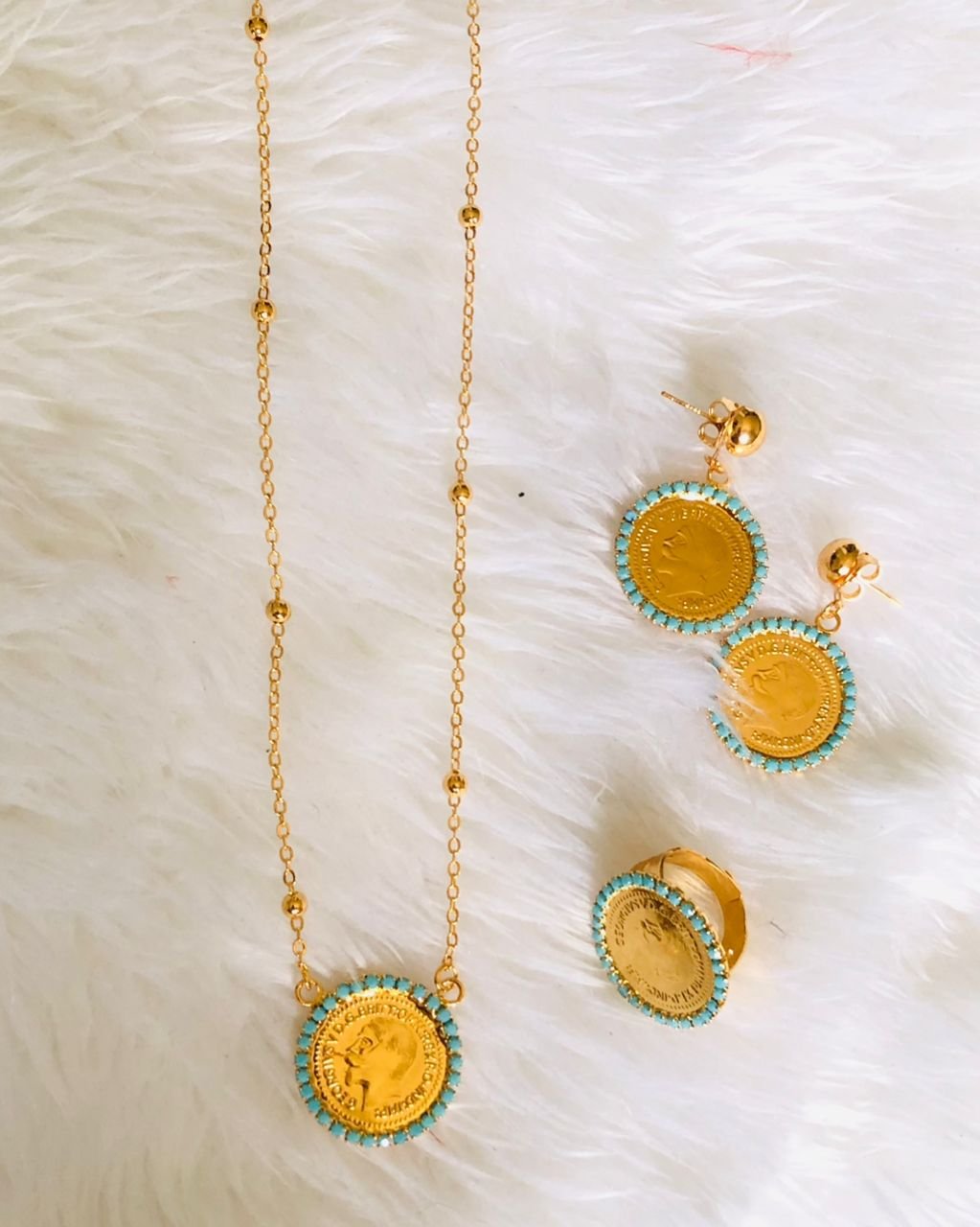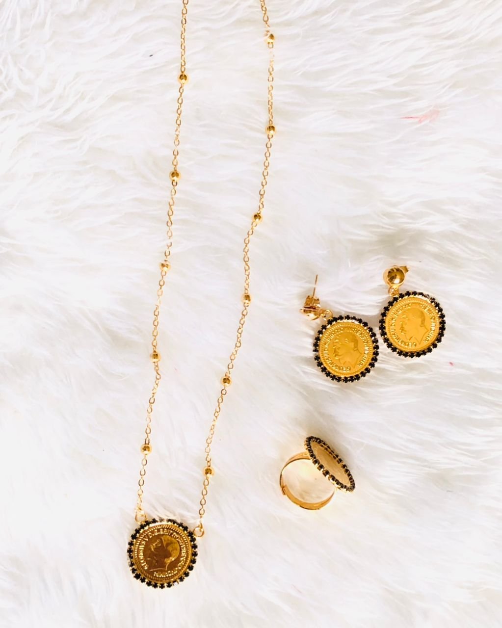 الطقم مكون من سلسل و حلق و خاتم مطلي بماء الذهب