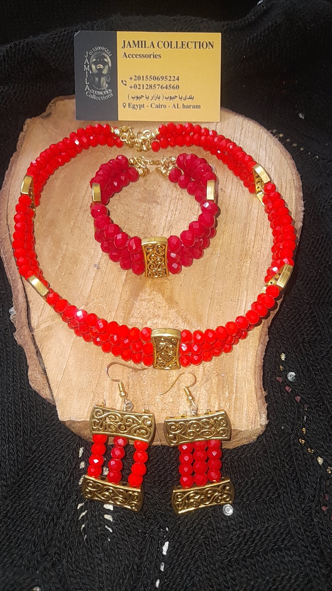 طقم مميز بالخرز الأحمر