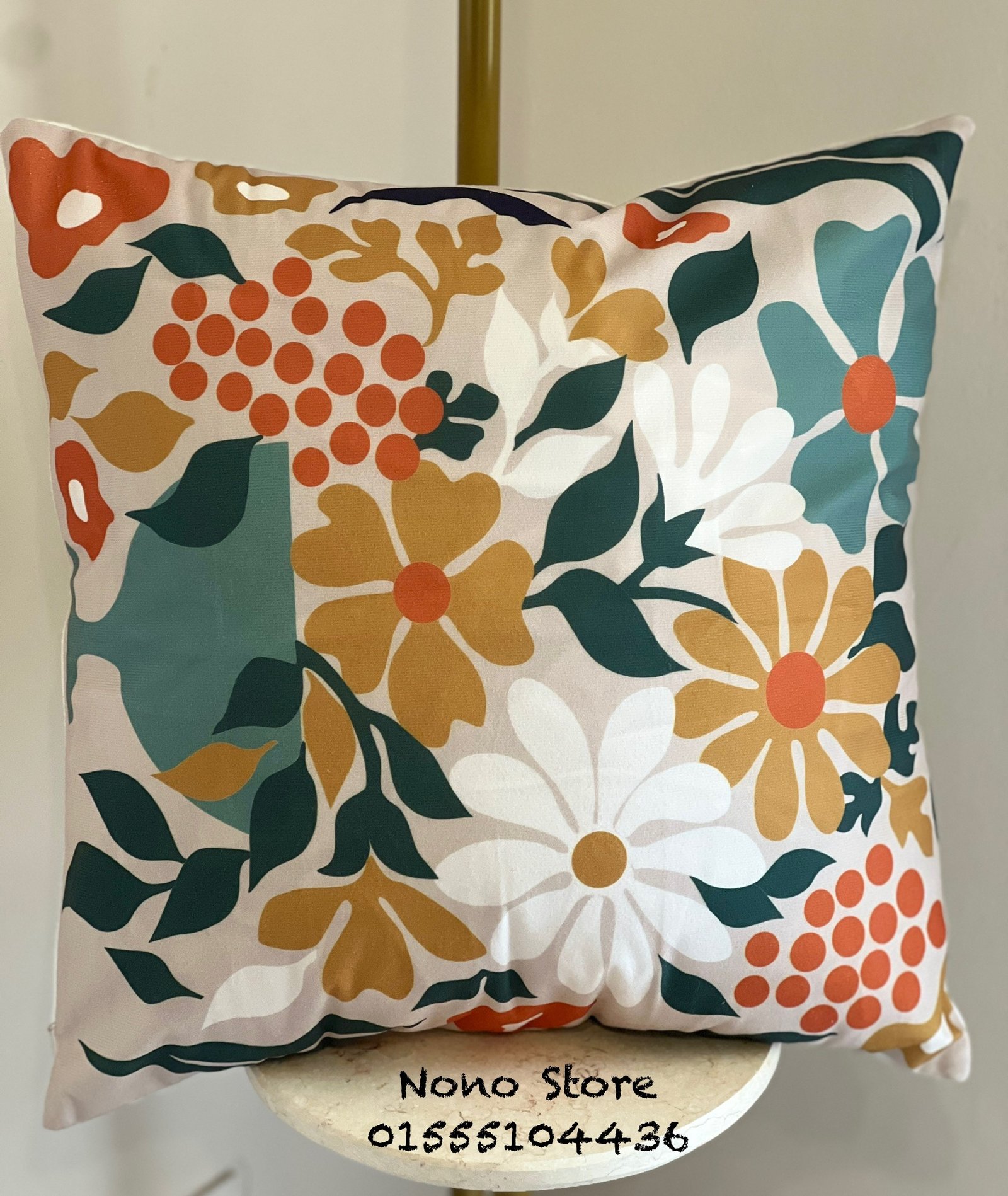 كفر كوشن في شكل ورود بألوان البني و البرتقالي و الزيتي و الأخضر الداكن ، مقاس 45*45 , الخامة قطن