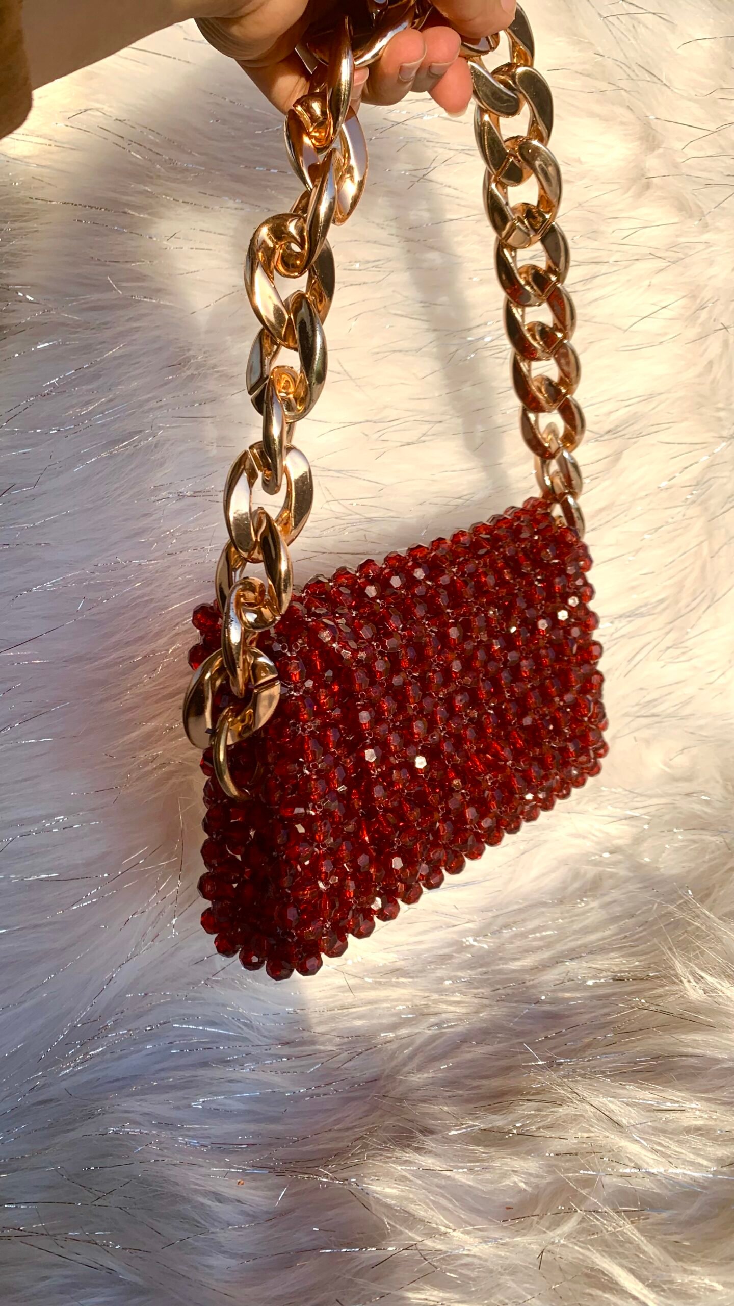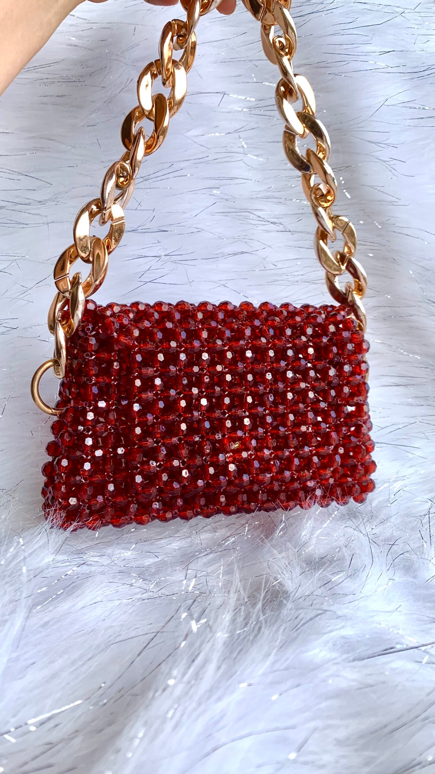 خرز اكريلك لون احمر مناسبه للخروجات الصباحيه والمسائيه