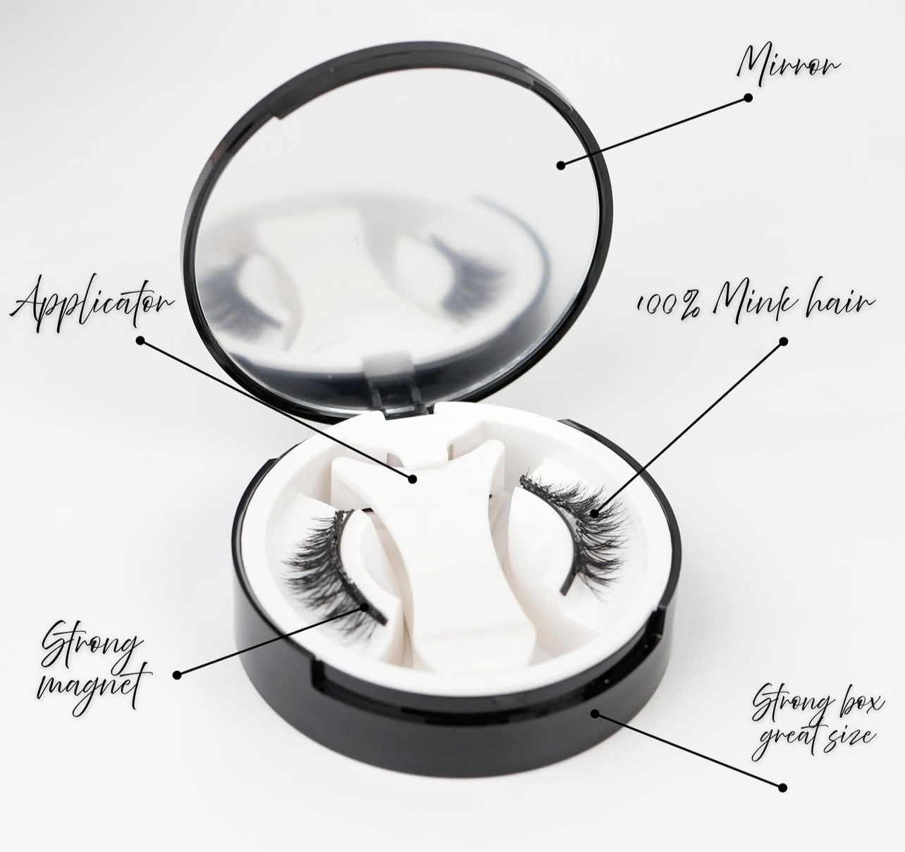 Housed in a chic, travel-friendly case with a mirror and magnetic applicator, your lashes stay safe, clean, and ready for any moment.