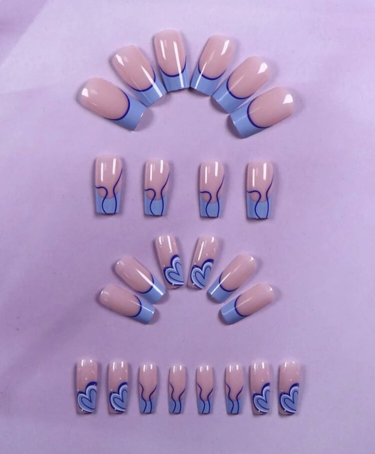 Elevate Your Style With 12pcs Blue Square Love French Press On Nails